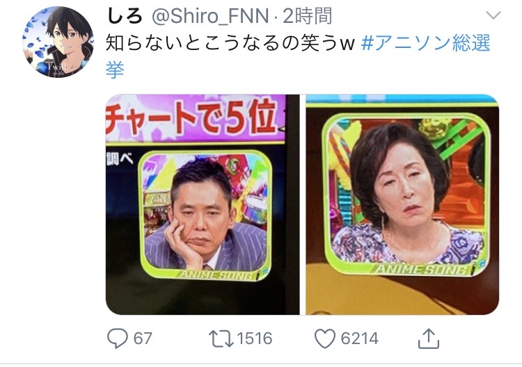 アニソン総選挙で興味なさそうな顔した芸能人にツイッターのオタクがブチギレ
