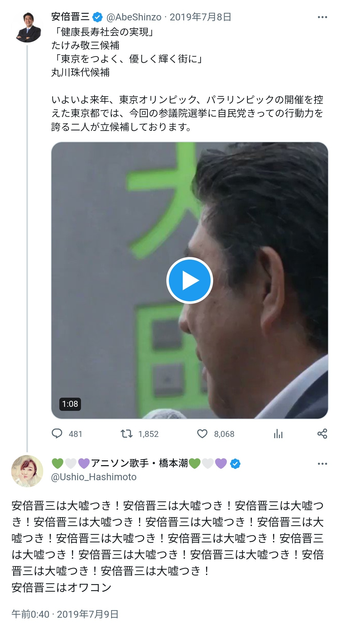 【悲報】大物アニソン歌手「安倍晋三は大嘘つき!」→現在はツイフェミへwwwww