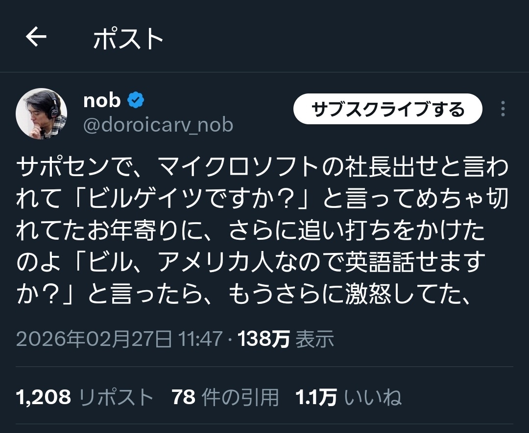 【爆笑】クレーマー「ふざけんな、社長出せ!」Microsoftサポセン「えっ、ビル・ゲイツをですか?」→クレーマーブチギレwwww