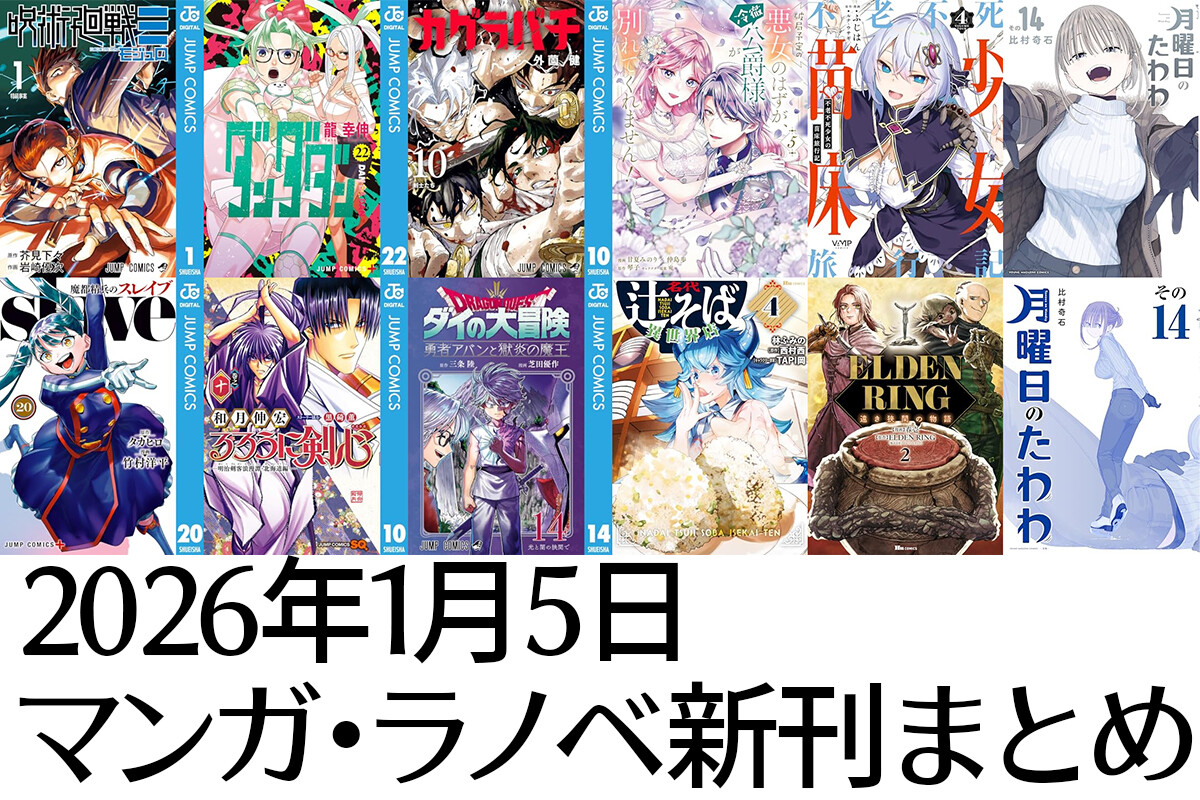【1/5発売】Kindleマンガ新刊:「呪術廻戦≡ 1」「ダンダダン 22」「カグラバチ 10」などジャンプ新刊一部48%還元に、「月曜日のたわわ 14」「不老不死少女の苗床旅行記 4」なども