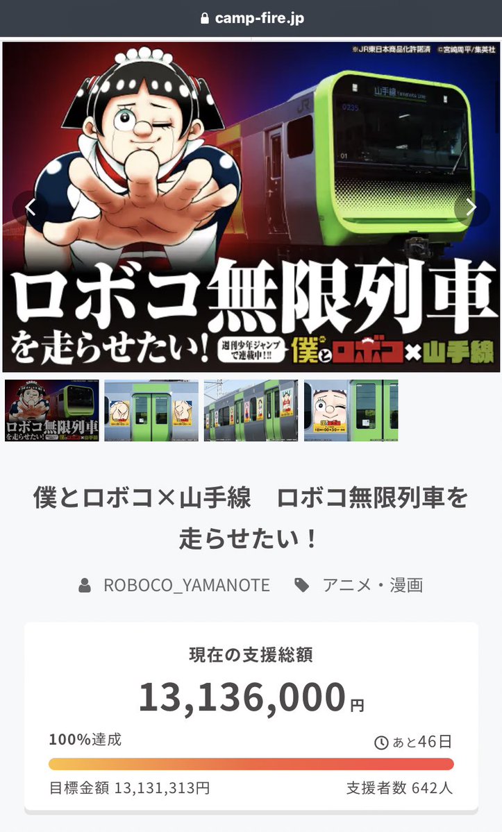 【画像】某ギャグ漫画さん「クラファンで1300万円集まったら無限列車走らせまーす」→結果wwww