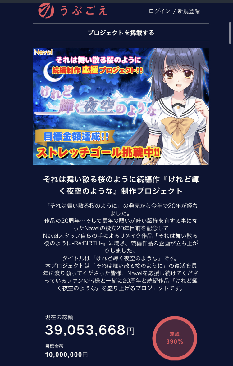 【朗報】美少女ゲーム会社「あの名作の続編作りたいので1000万クラファンお願いします!」←3900万集まってしまう