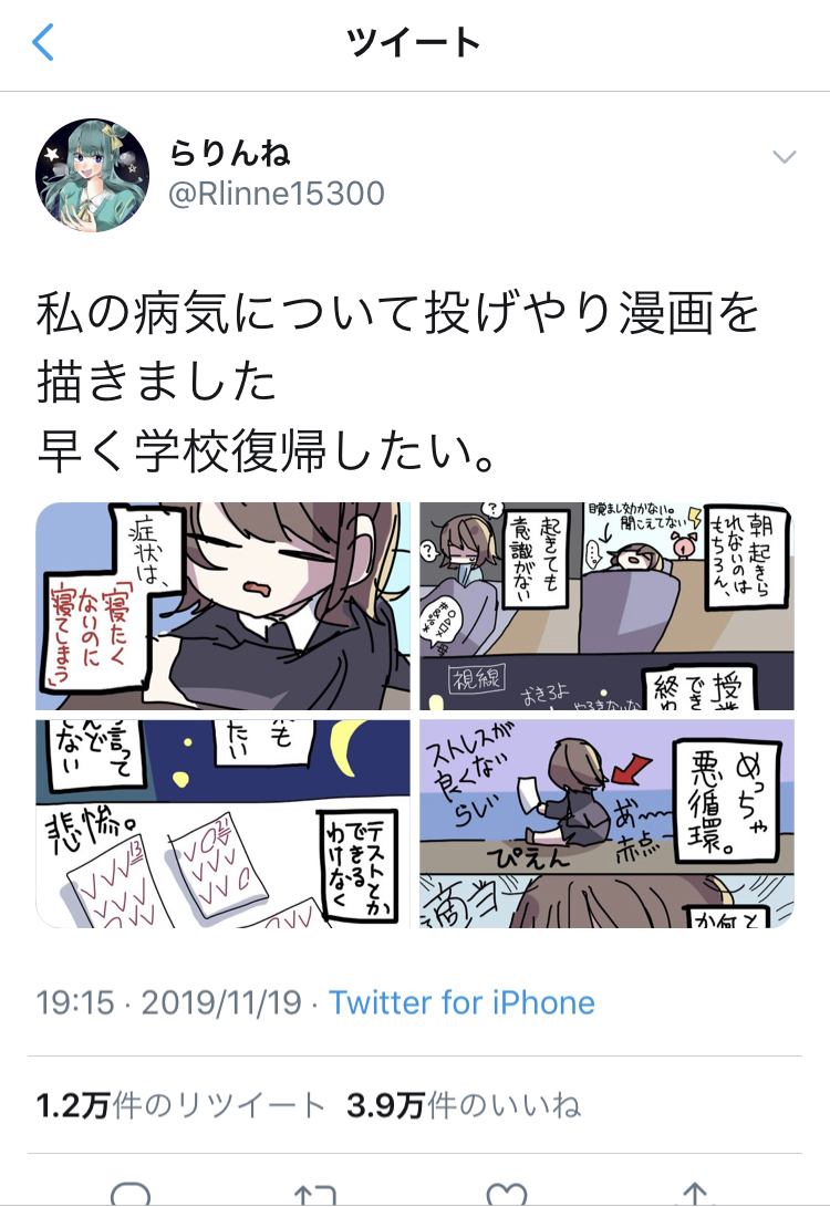 【悲報】twitter女子さん「私は『過眠症』という病気です。理解してもらうためにフルカラー漫画にしました」