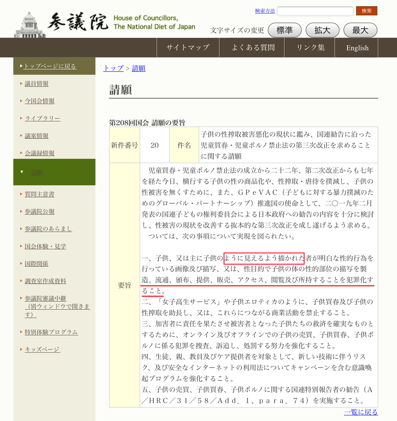 【悲報】子供の「ように見える」性的イラストの単純所持、犯罪化する請願が国会に提出されてしまう…