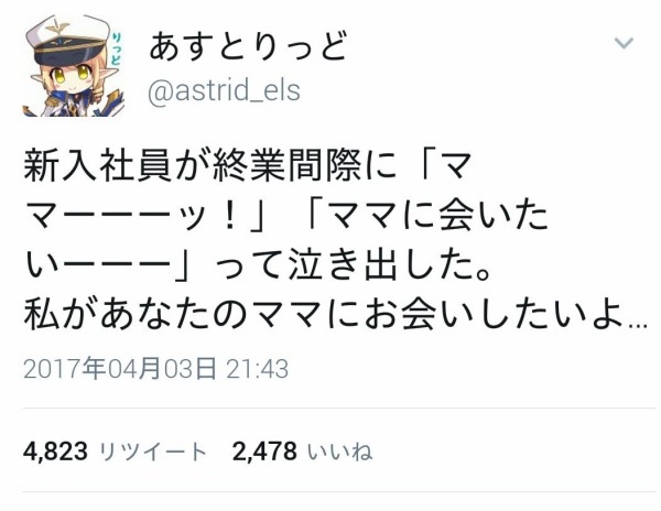 【悲報】アニメアイコン「新入社員が『ママに会いたいーーー』って泣き出した…」