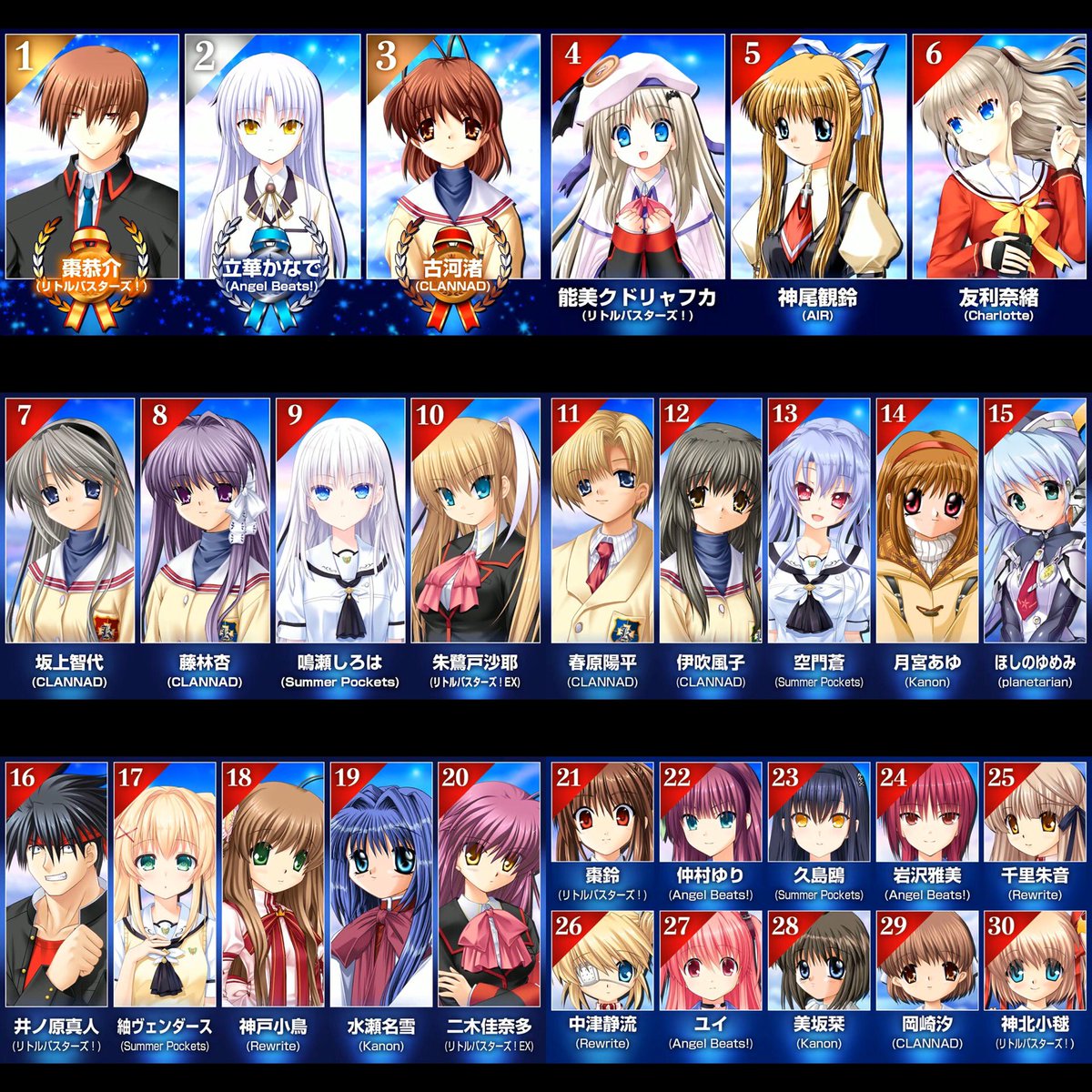 【画像】key作品、キャラ人気投票の結果がこちらwwwwwwww