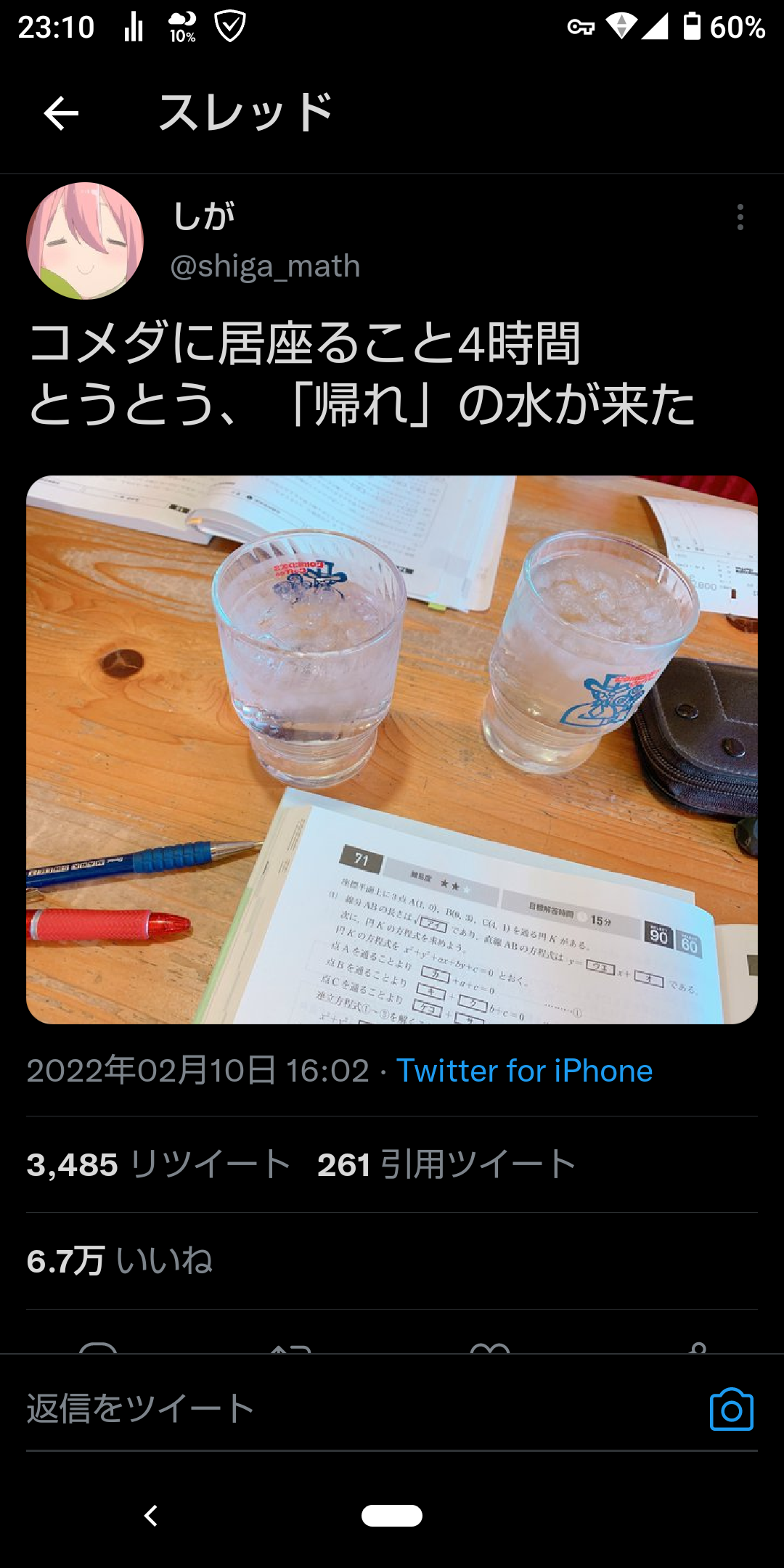 【画像】アニメアイコン「コメダ珈琲で4時間勉強してたら『帰れの水』を出された・・・・」