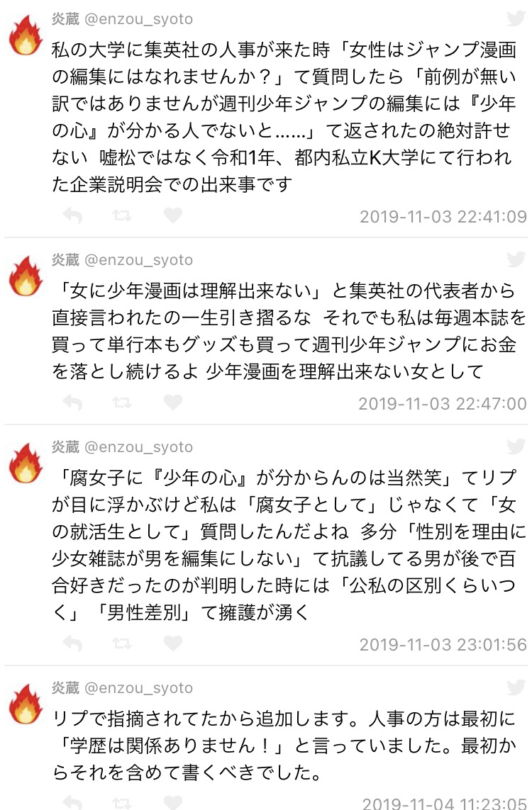 【悲報】就活生「女性でもジャンプ編集部に入れますか?」集英社「はい!なれますよ!(ニッコリ」