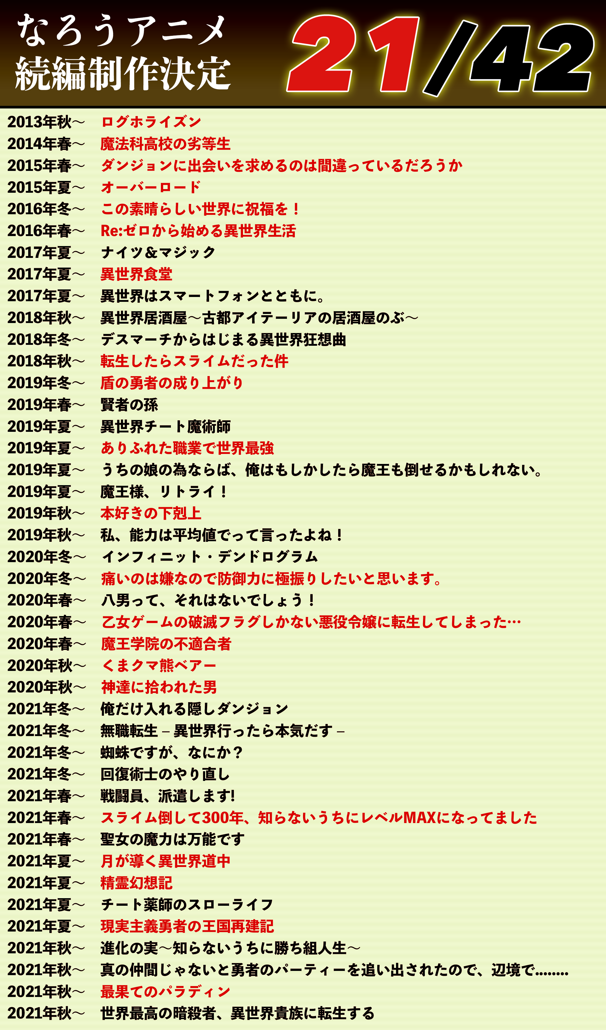 「なろうアニメ」←50%の確率で続編が決定していたwwwww