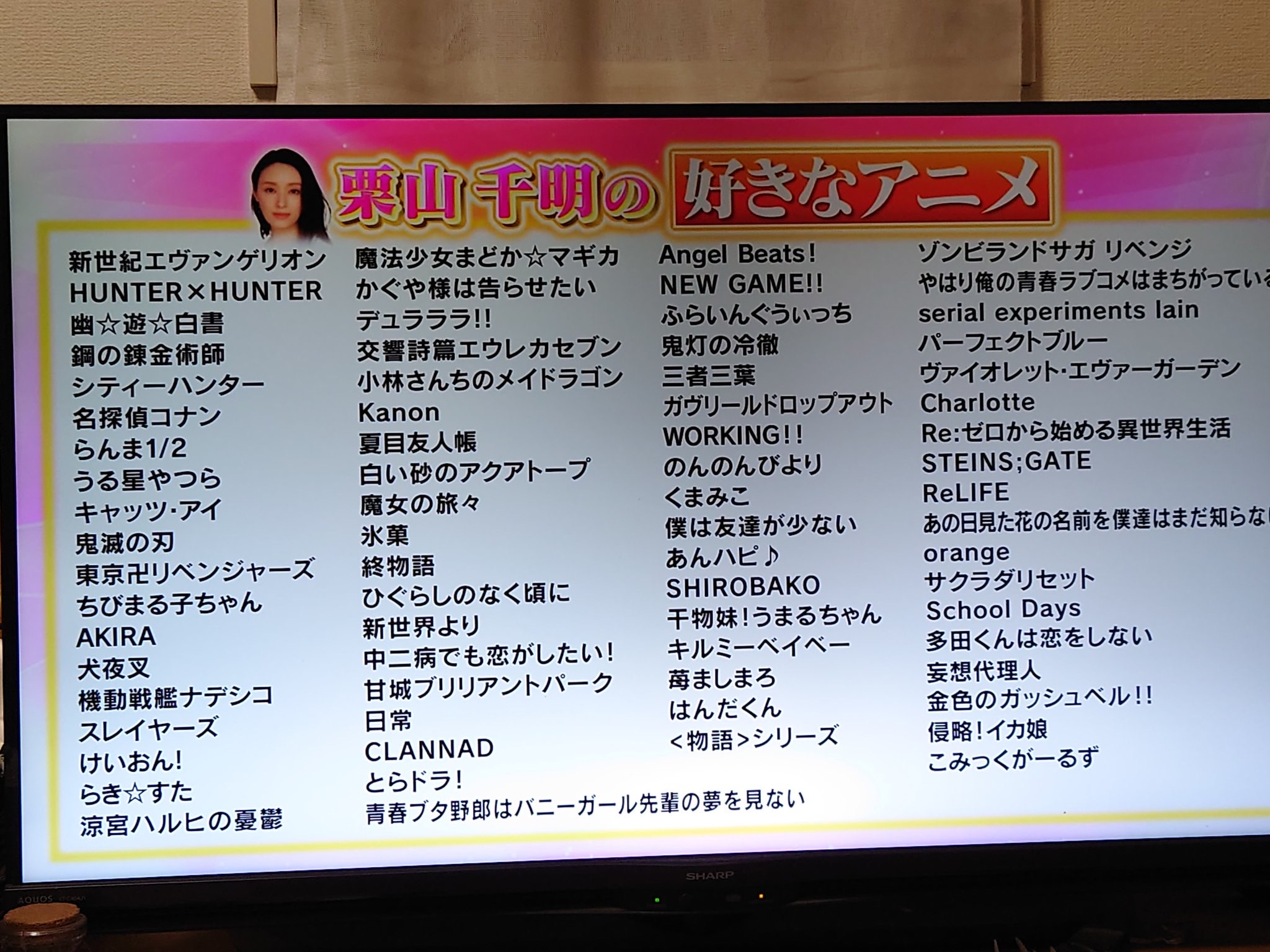 【画像】オタクで女優の栗山千明さん、アニメ好きとか言いながらメジャーな作品が好きなだけのミーハーだったことが判明