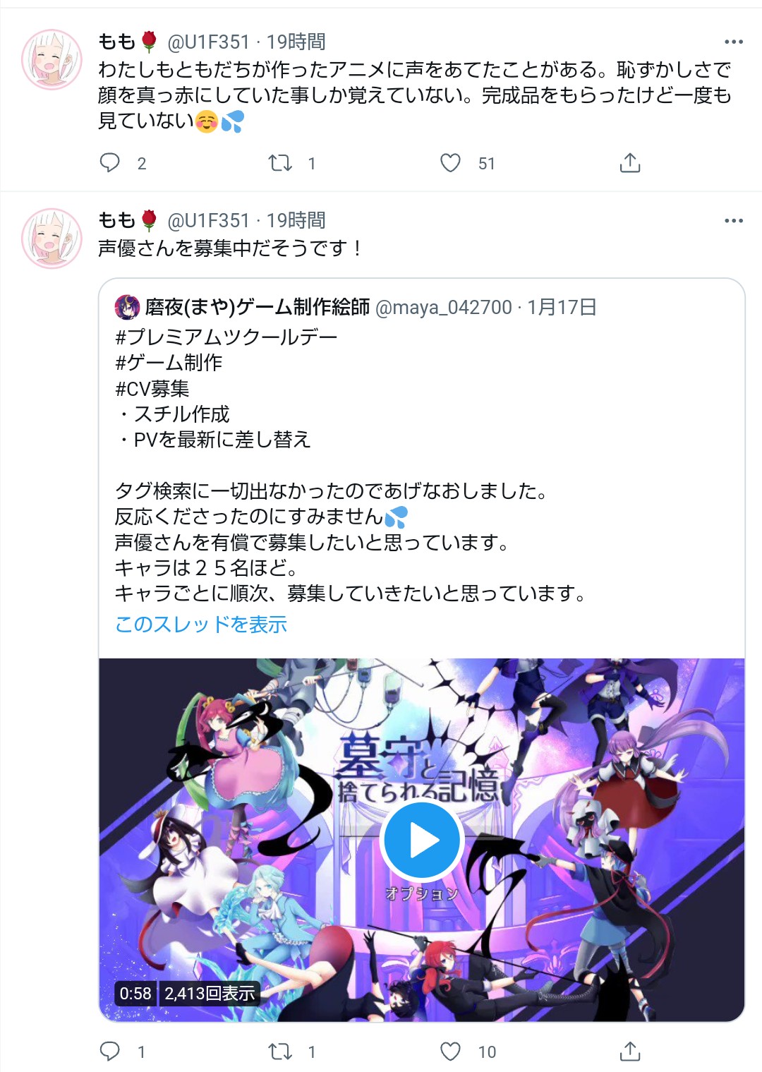 【画像】ももちゃん(JC)、同人アニメの声優をやったことがあった模様wwwww