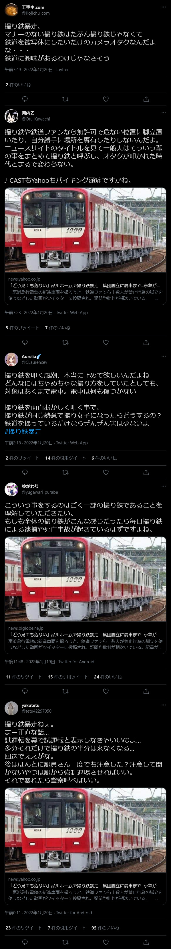 【悲報】撮り鉄さん、集団危険行為で大暴れしてニュースになる ⇒ 撮り鉄「『マナーのない撮り鉄』は撮り鉄のフリしたカメラオタクなんだよ」と反論