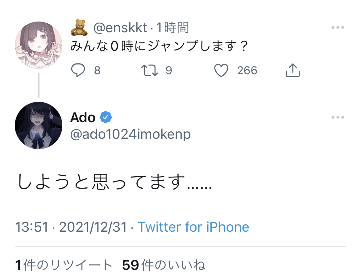 【朗報】うっせぇわAdo「0時にジャンプしようと思ってます」ドンッ