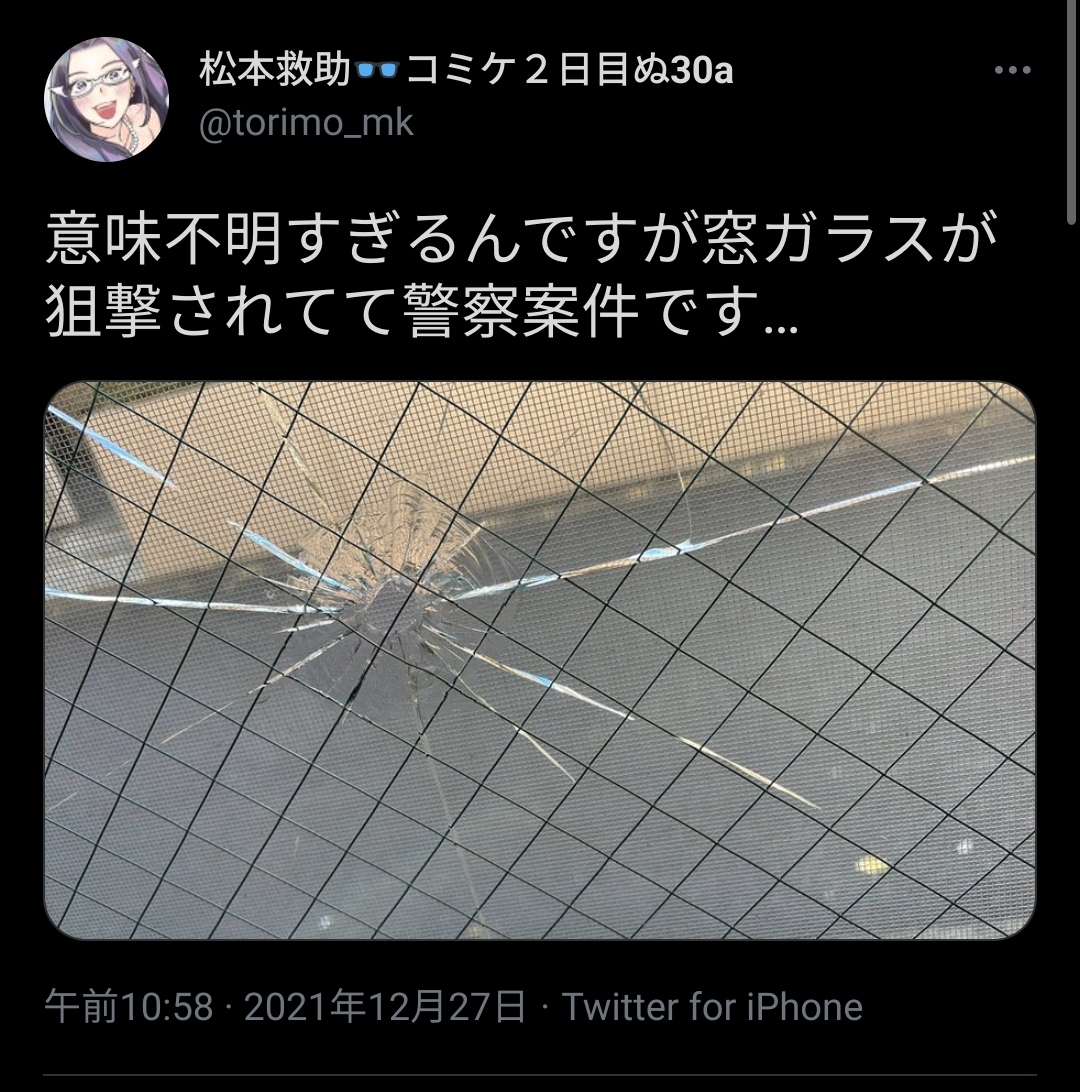 【悲報】漫画家さん、何者かに狙撃されてしまう「うちの猫が狙われた」
