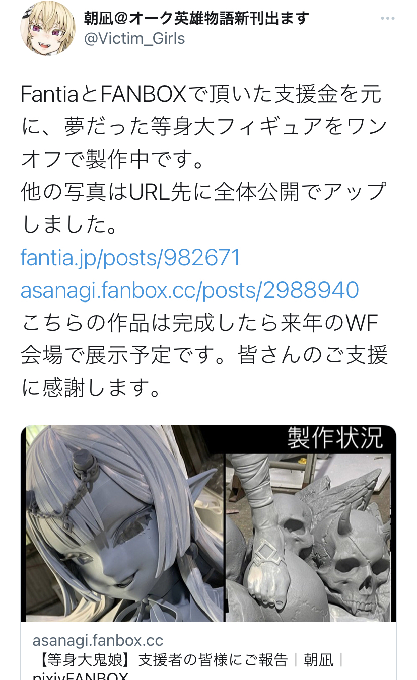 【画像】人気同人漫画家の朝凪さん、FANBOXの支援金で等身大フィギュアを作るwww
