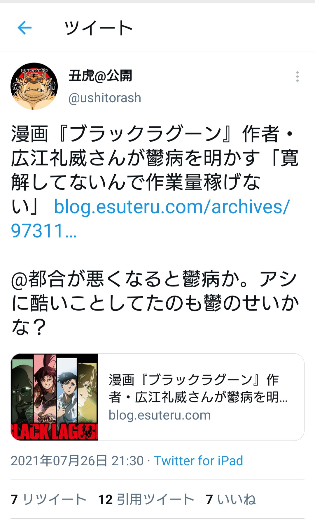 【悲報】ブラックラグーン作者、Twitter民とのバトルに敗北か