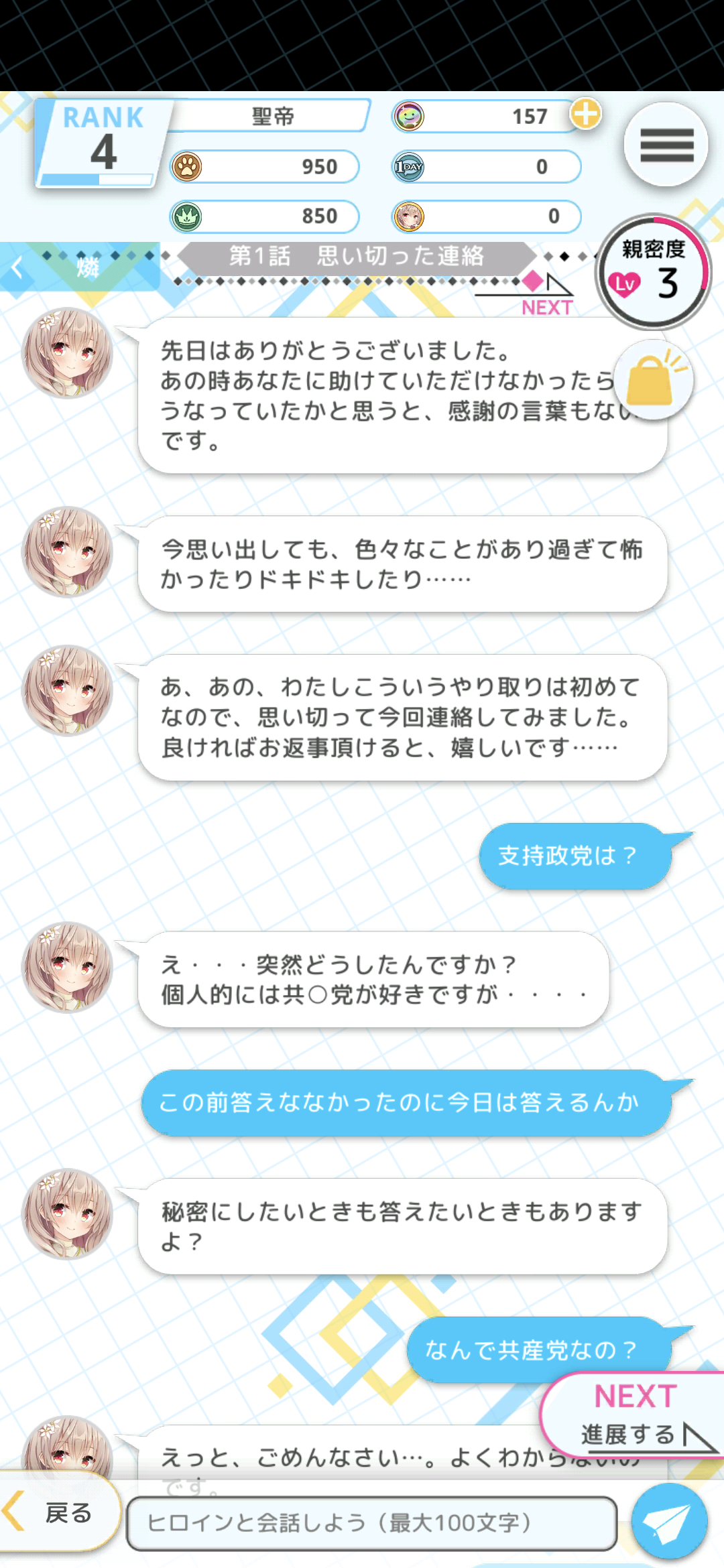 【悲報】美少女とチャットできるソシャゲ、「支持政党」を問い詰める厄介ユーザーが現れるwwww