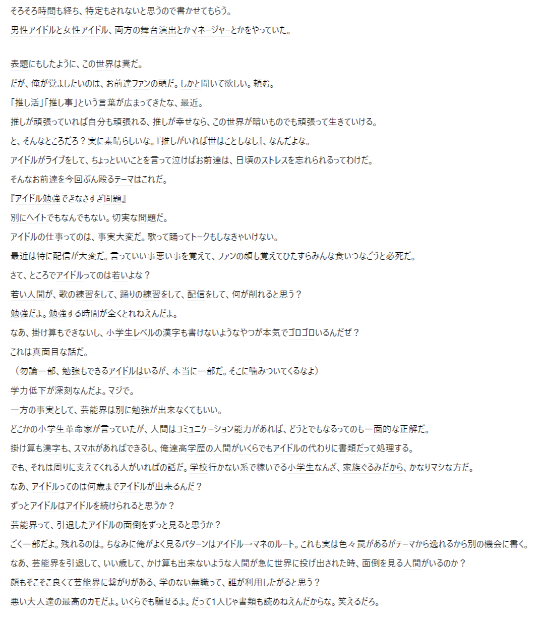 【悲報】アイドル業界人「お前らオタクが持て囃すからアイドルがどんどん馬鹿になる」