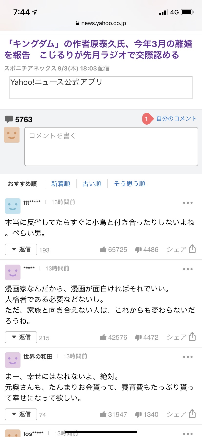 【悲報】ヤフコメ民、キングダム作者にガチギレしてしまう…
