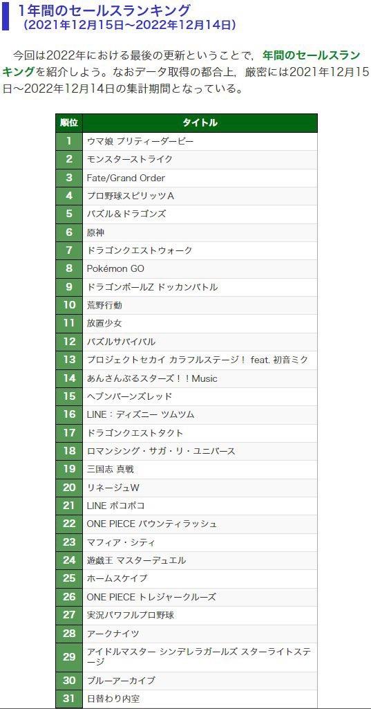 【悲報】2022年ソシャゲ売上ランキング、ガチで知らんタイトルばっかになるwww