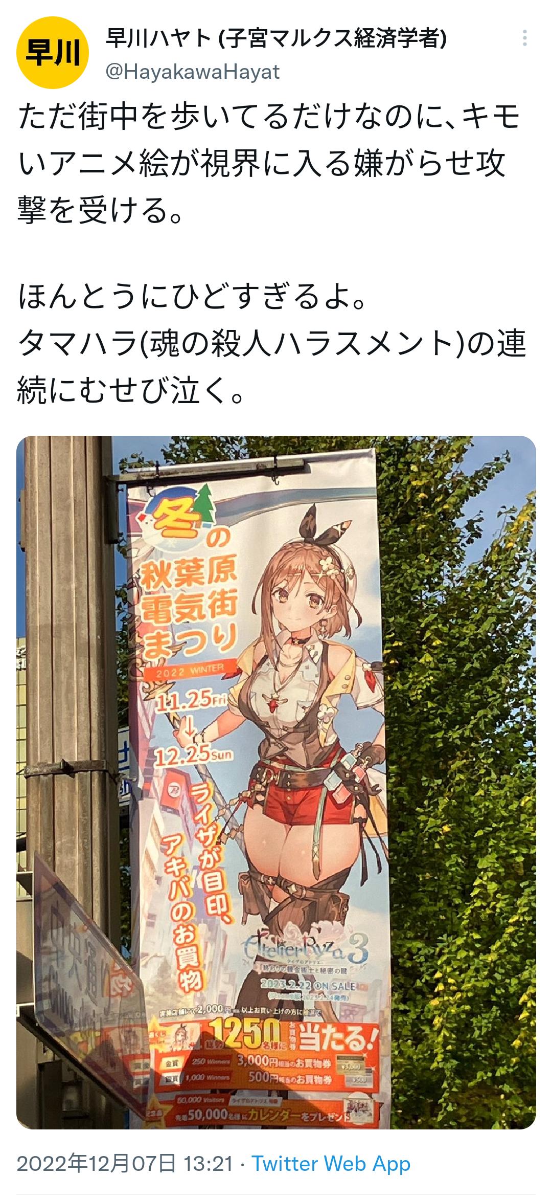 【悲報】ツイフェミさん、秋葉原の『ライザのアトリエ』広告が性的すぎて衝撃「タマハラの連続にむせび泣く。」