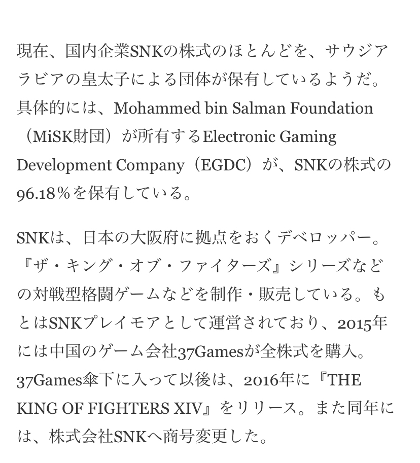 【朗報】古参格ゲーメーカーのSNKさん、サウジアラビアの力でとんでもないことになっていたwwwwww