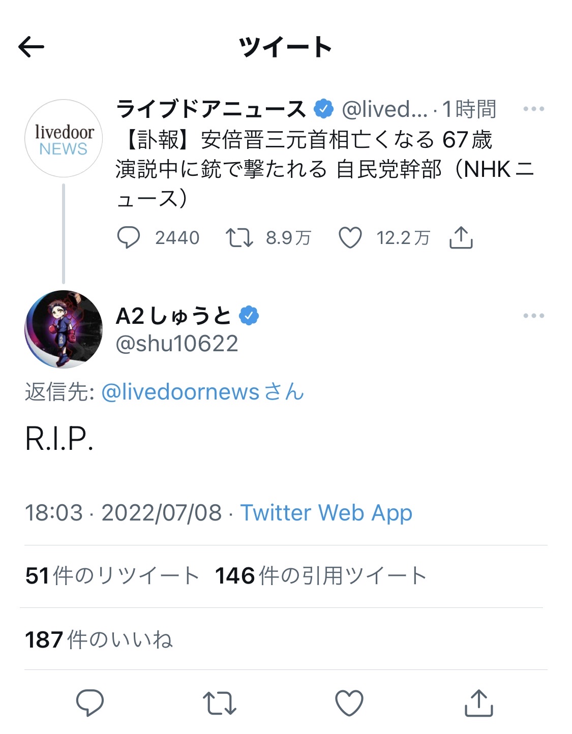 【悲報】プロゲーマーさん、安倍晋三氏の死去のニュースにふざけたリプを送り批判殺到