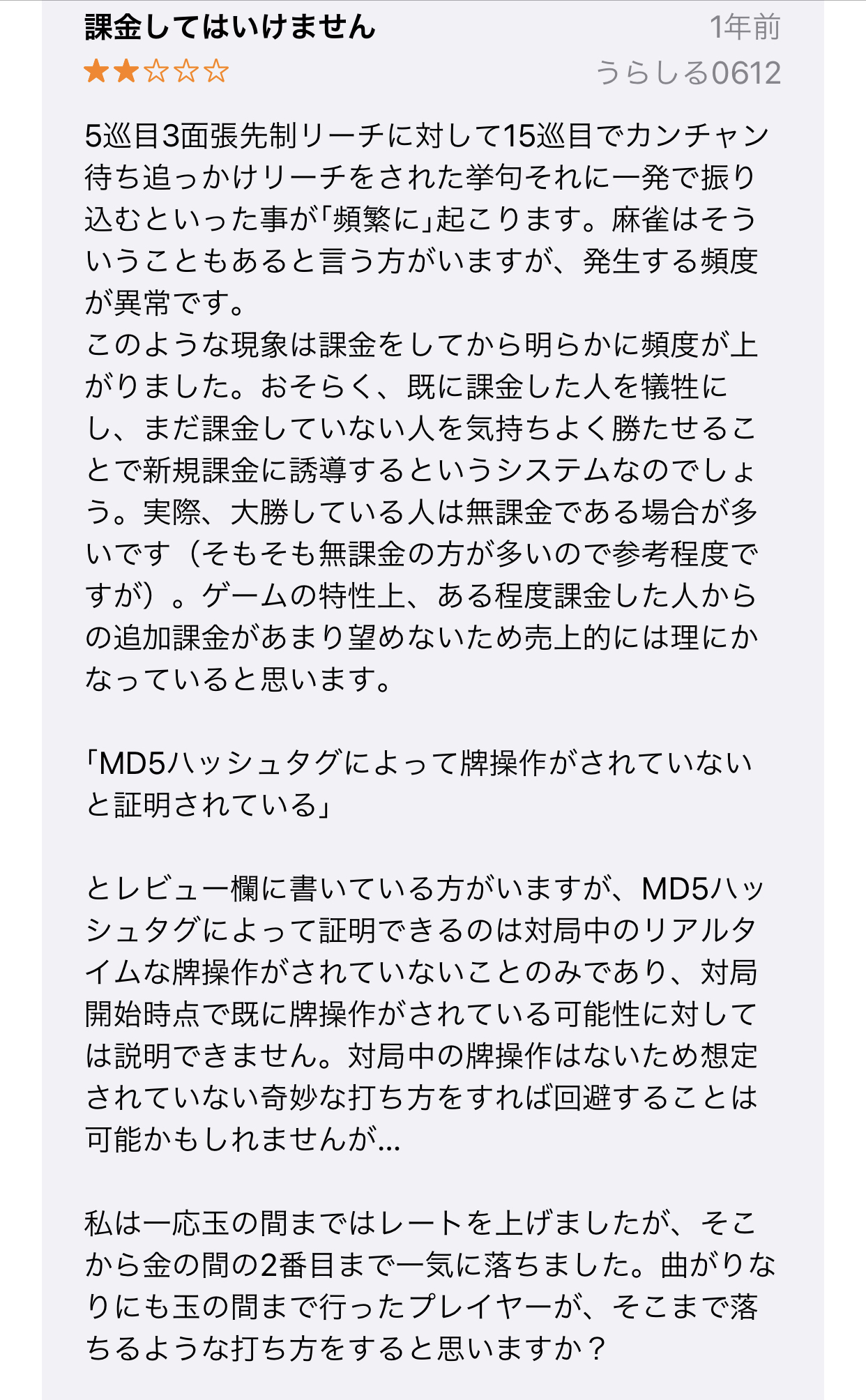 【悲報】麻雀ソシャゲ「雀魂」のレビュー、イチャモンみたいになる