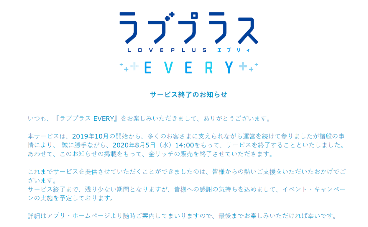 【悲報】ラブプラスのソシャゲ、本日14時をもってサービス終了…