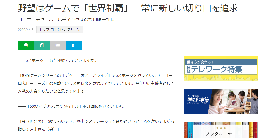 【朗報】コーエーテクモ「500万本売れる大型タイトルの開発が終盤にきている」