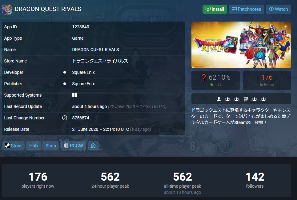 Steam版『ドラクエ ライバルズ』、500人ぐらいしかプレイしてない模様