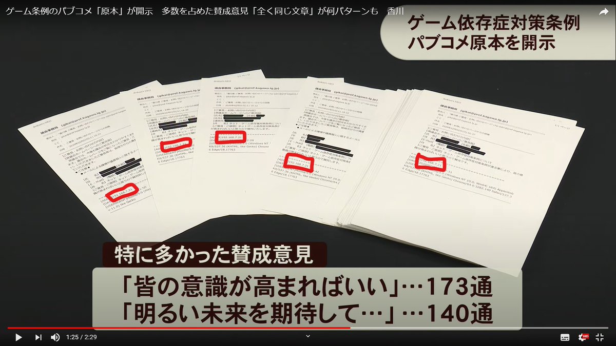 【悲報】香川ゲーム条例のパブコメ、同一IPからの「全く同じ文章」が何パターンも発見されてしまう…