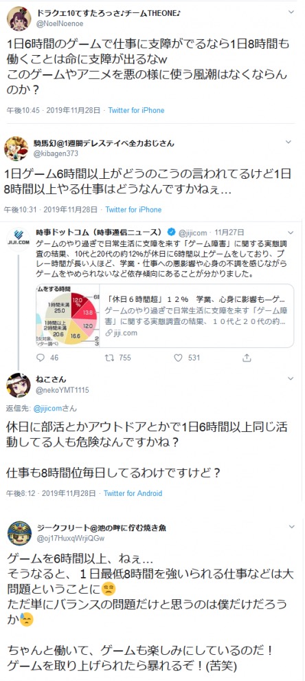 「1日6時間ゲームしてるのがゲーム依存なら1日8時間以上仕事しているのは仕事依存」←反論できるか?