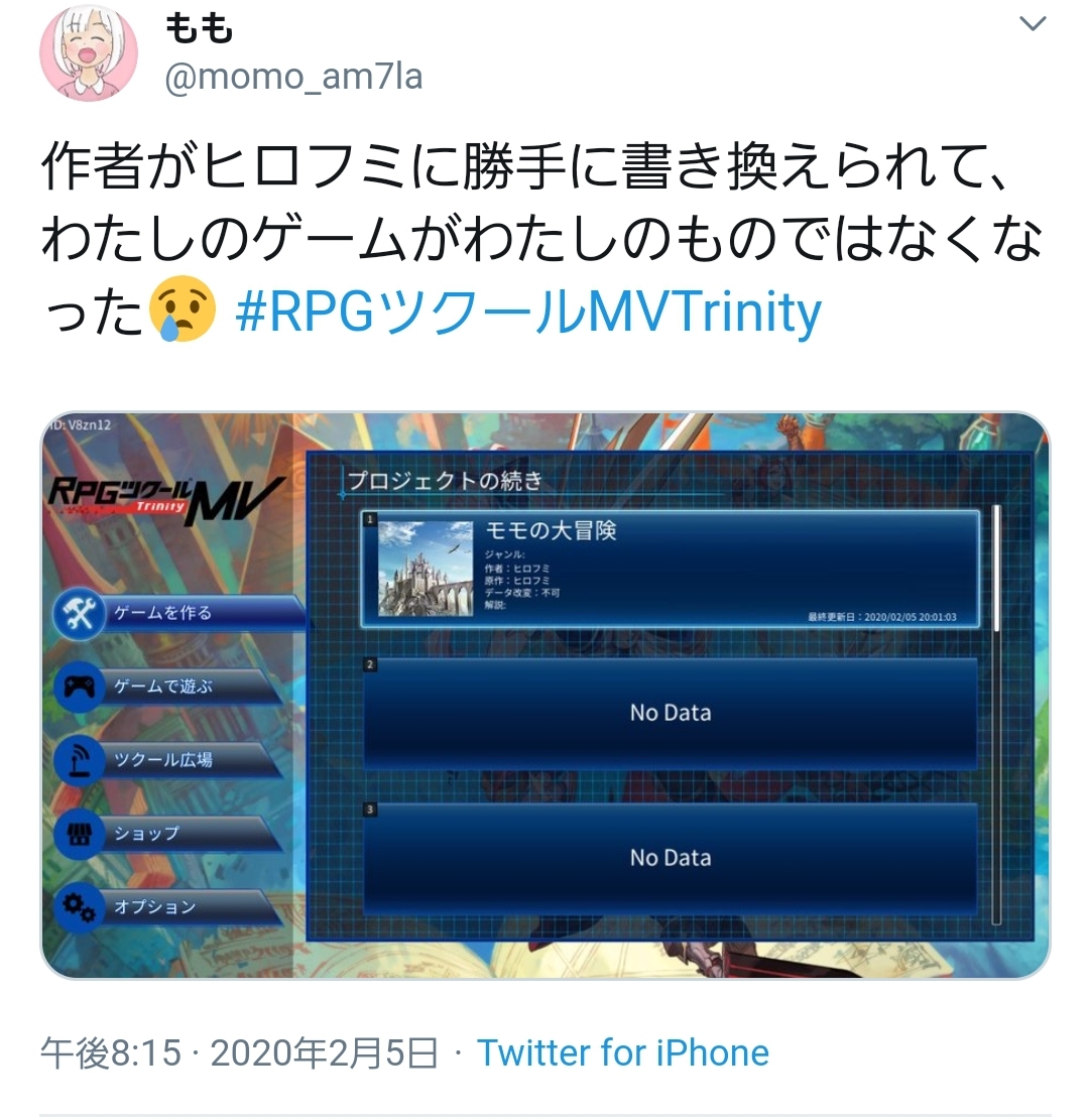 【朗報】RPGツクールのももちゃん、例の『ヒロフミウイルス』を完治する