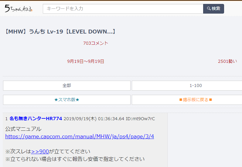 【悲報】現在の「モンハン板」で最も勢いの有るスレがこちらwwww
