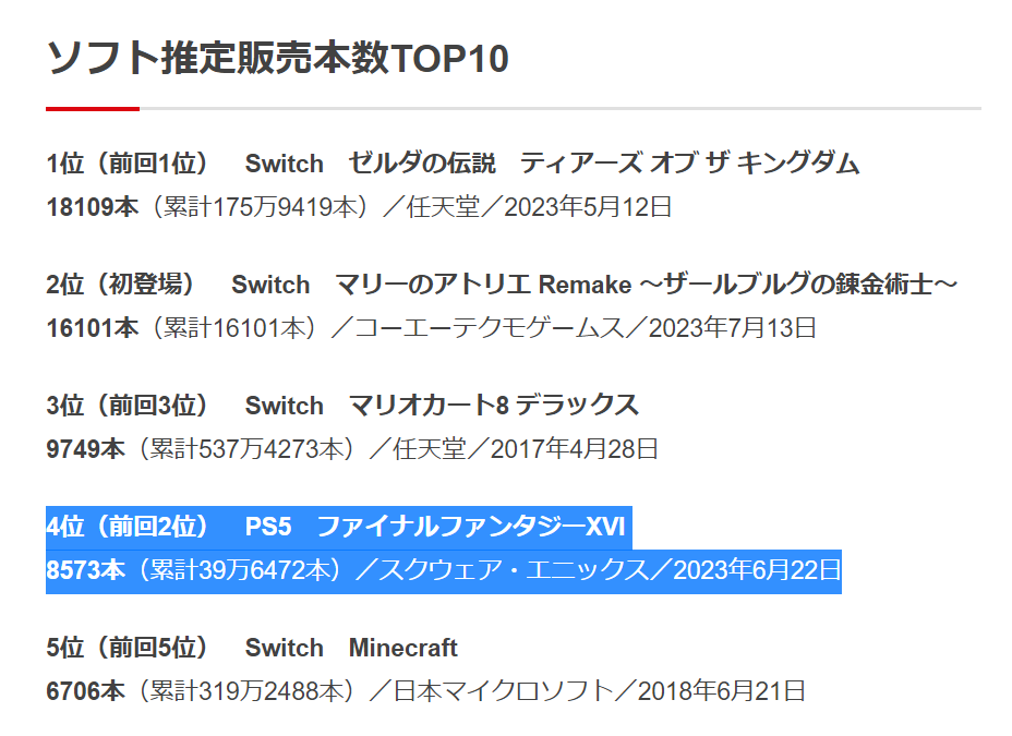 【悲報】FF16さん、ジワ売れ狙いなのに3週目で8573本になってしまう…