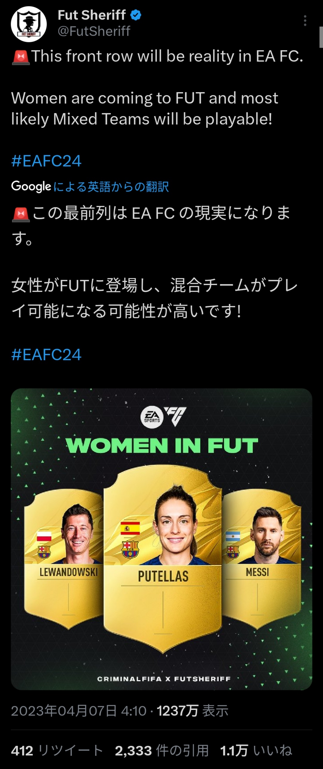 【悲報】サッカーゲームFIFAさん、男と同じ強さの女性カードが登場し炎上してしまうwwwww