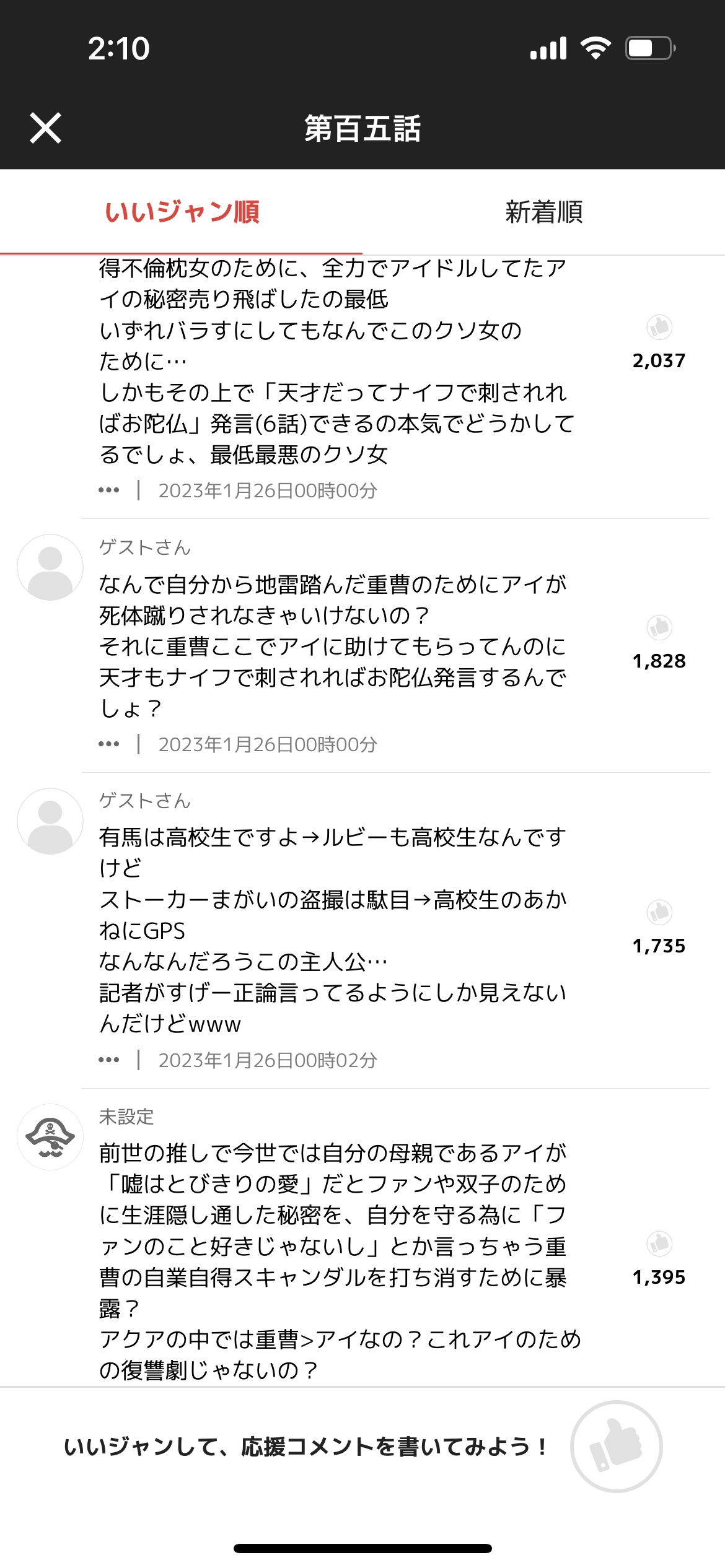【悲報】ジャンプ+『推しの子』最新話、コメ欄大炎上してしまうwww