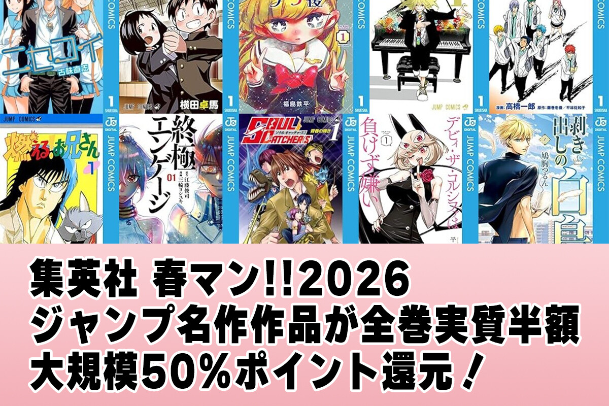 5日まで!「ニセコイ」「背すじをピン!と」対象!Kindleでジャンプコミックス大規模50%還元 50作品以上まとめ【集英社 春マン!!】