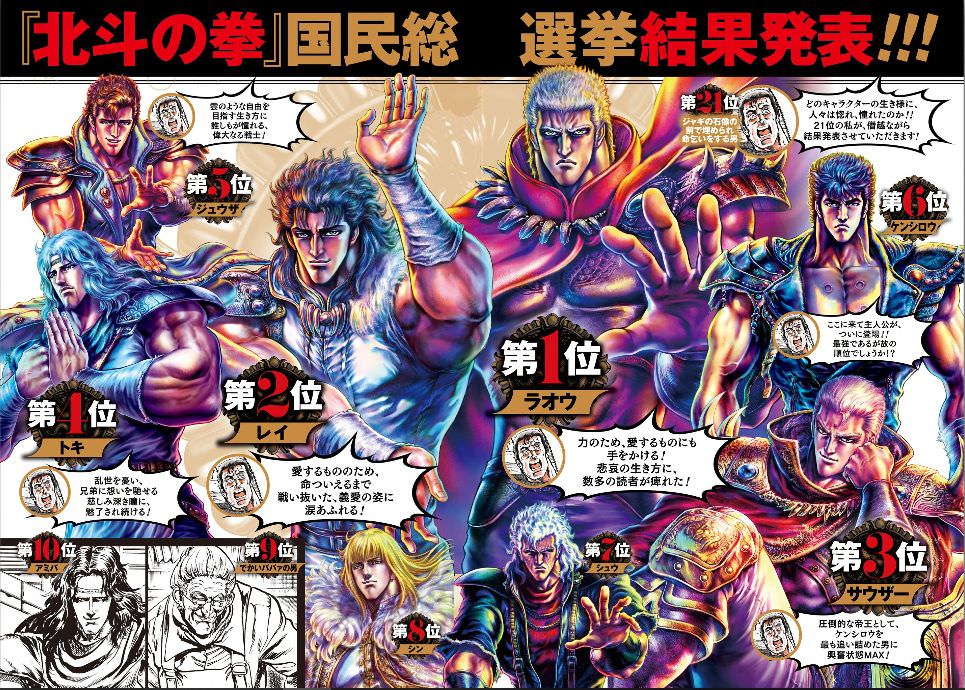 【悲報】『北斗の拳』総選挙、ケンシロウが6位になってしまう