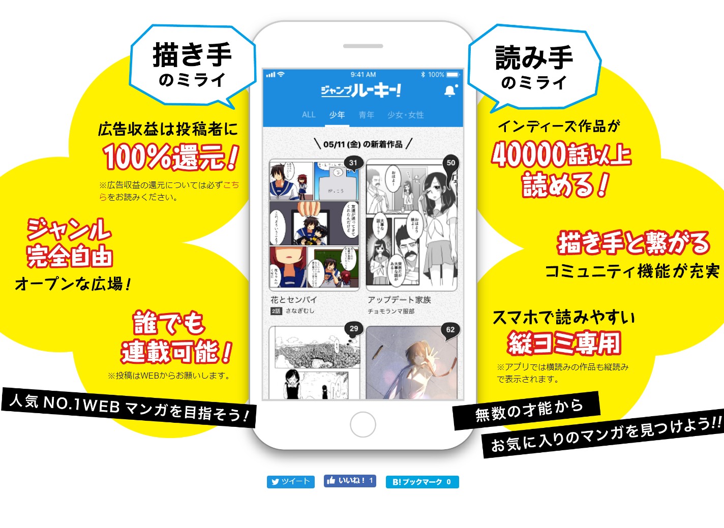 作者へ広告収益100%還元!集英社の漫画投稿アプリ「ジャンプルーキー!」発表