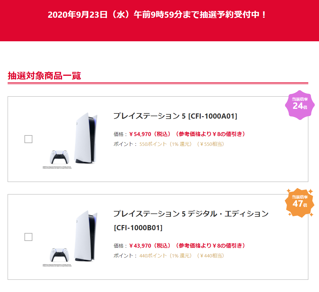 【21日昼現在】ヨドバシカメラPS5抽選 PS5 29倍、PS5DE 59倍