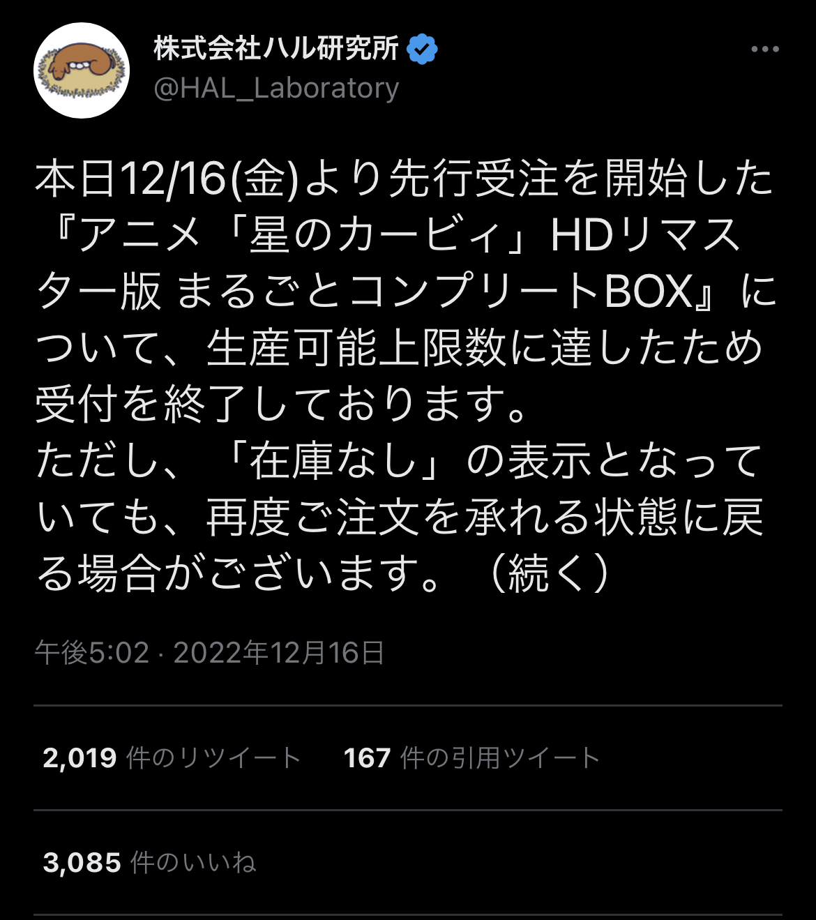 【悲報】アニメ「星のカービィ」のBDBOX、速攻で受注生産終了になってしまうwww