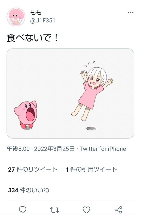 【朗報】ももちゃん(JC)、新作の『カービィ』お絵描きを投稿するwwww