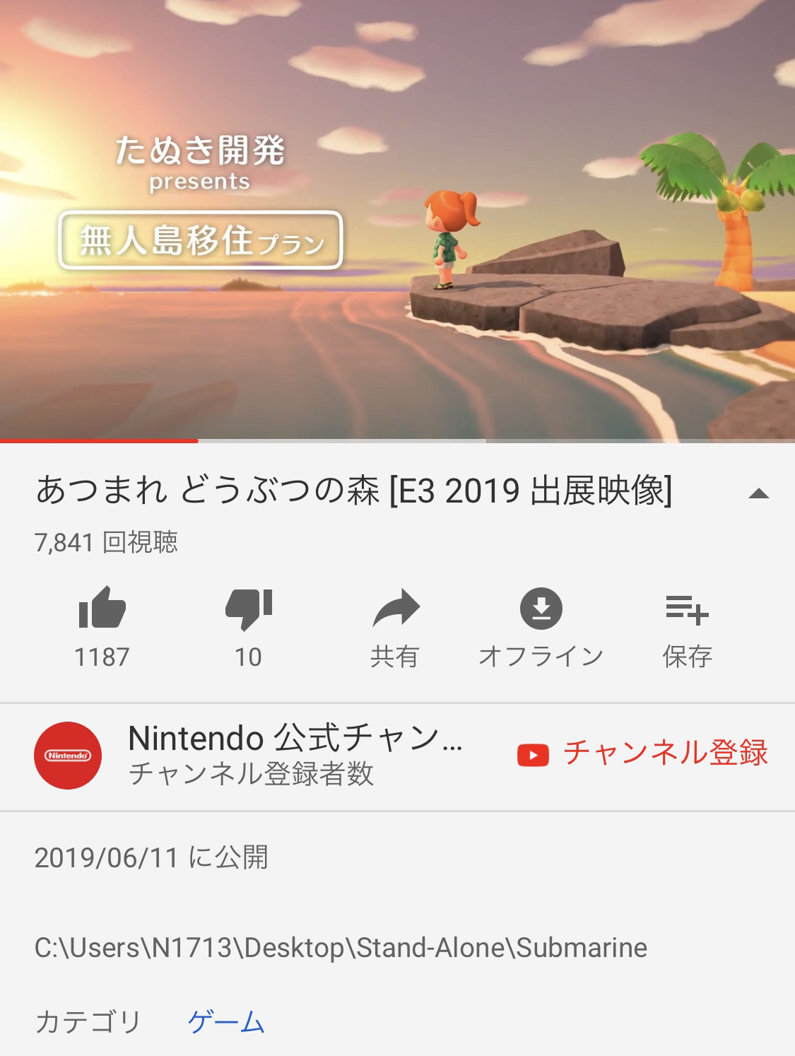 【悲報】任天堂公式さん、動画のローカルアドレスを晒してしまうwwwwww