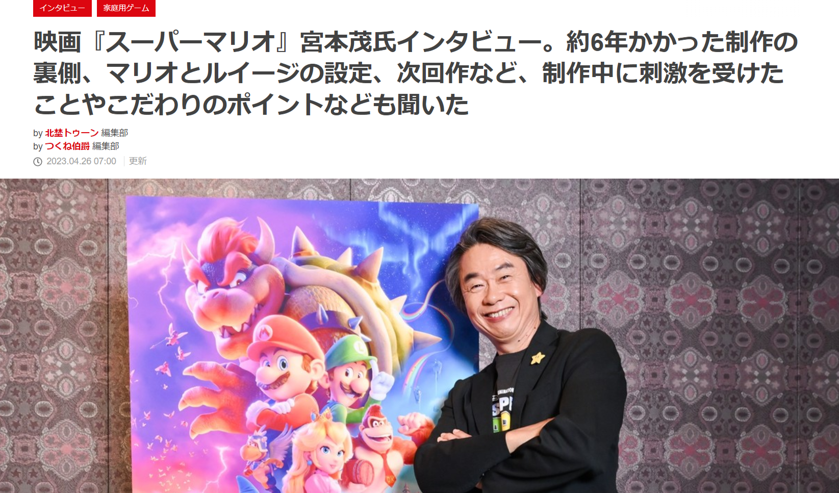 【朗報】任天堂の宮本茂氏、映画評論家たちのマリオ映画低評価に「追い風になった」と感謝を述べる