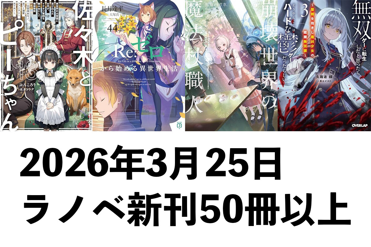 【3/25発売】ラノベ新刊:「佐々木とピーちゃん 13」「Re:ゼロから始める異世界生活 44」「崩壊世界の魔法杖職人 3」など50冊以上