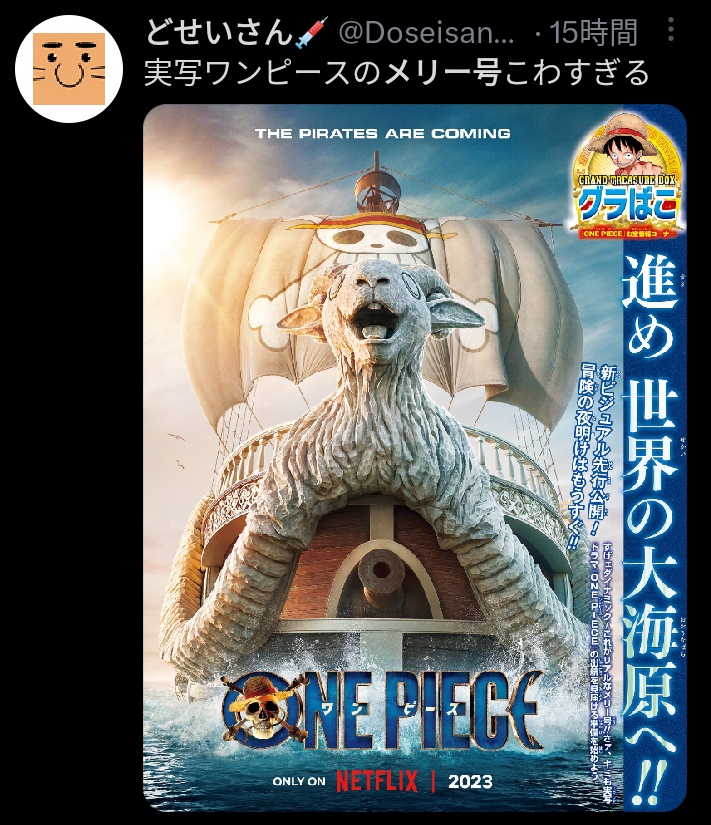 【悲報】実写版ワンピースのメリー号、怖すぎると炎上www
