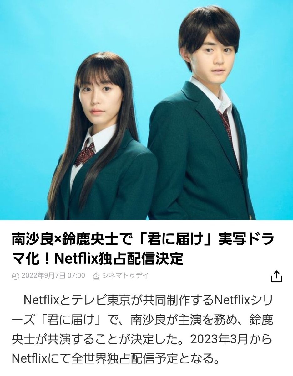 【悲報】人気漫画「君に届け」、再実写化されるも『三浦春馬が良かった』と炎上してしまう…