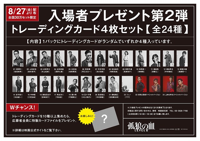 人気任侠映画『孤狼の血LEVEL2』、何故か入場特典でトレカ(全24種の内4枚封入)を配る